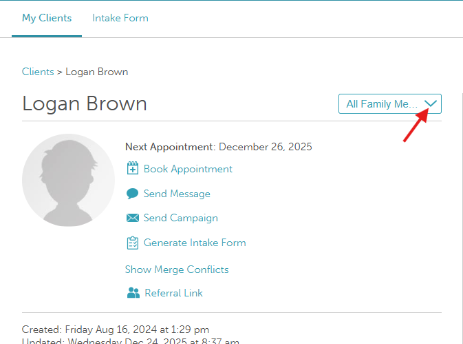 If a profile contains duplicate family members, you can consolidate the duplicate accounts from the main client's profile. In this article, we will walk through the process of merging family members.