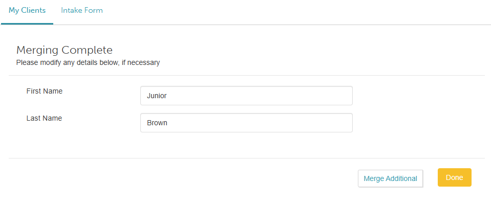 Once you're satisfied, click Done to finish the merging or select Merge Additional to include more family members in the merge.