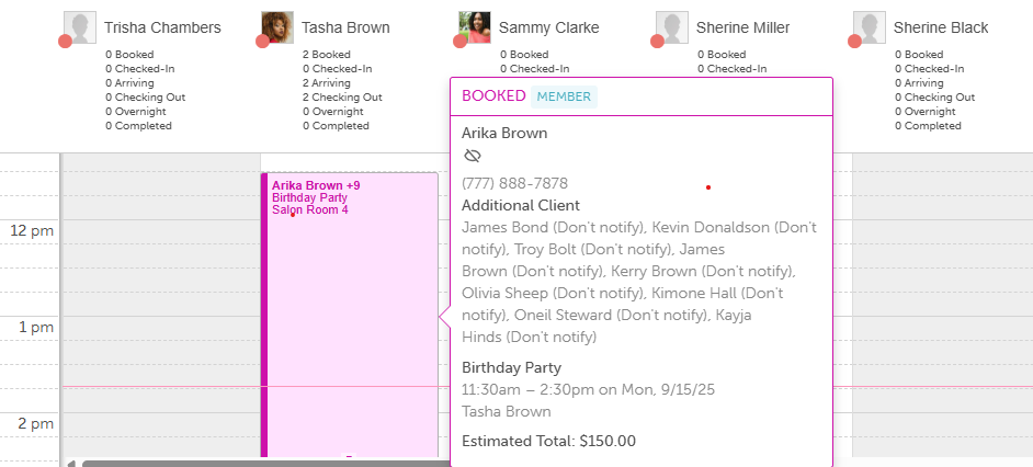 Group appointments can be scheduled in-store by entering the appropriate number of participants or resources needed. This streamlines booking management while ensuring accurate capacity control.