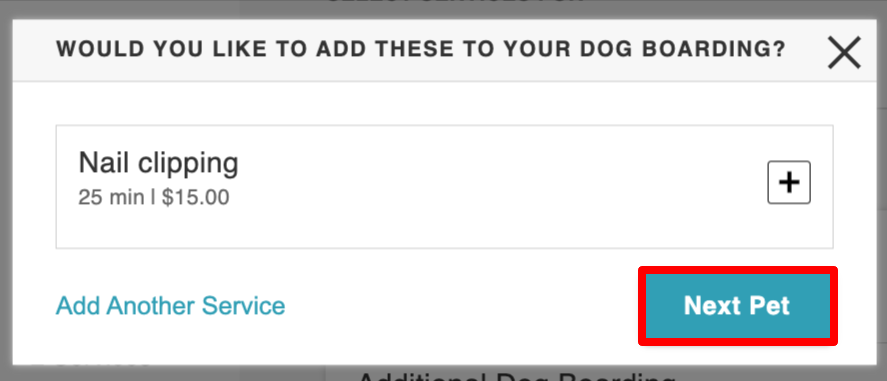 - Choose a service for the first pet, then click "Next Pet" to continue