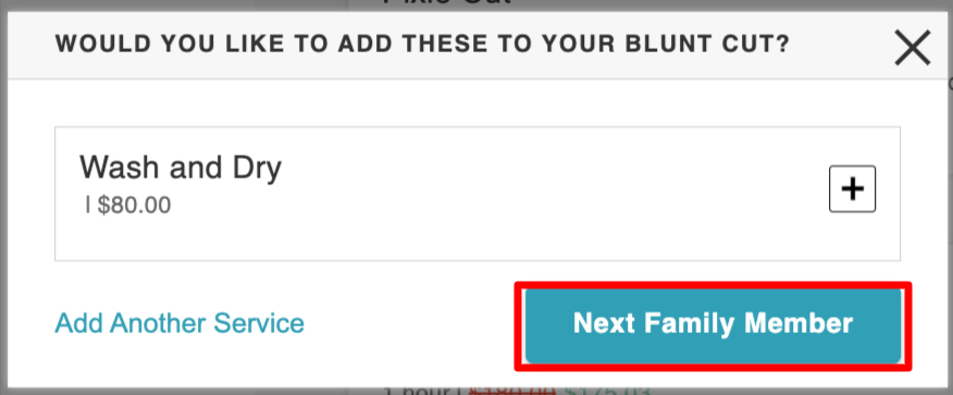 Choose a service for the first family member, then click "Next Family Member" to continue