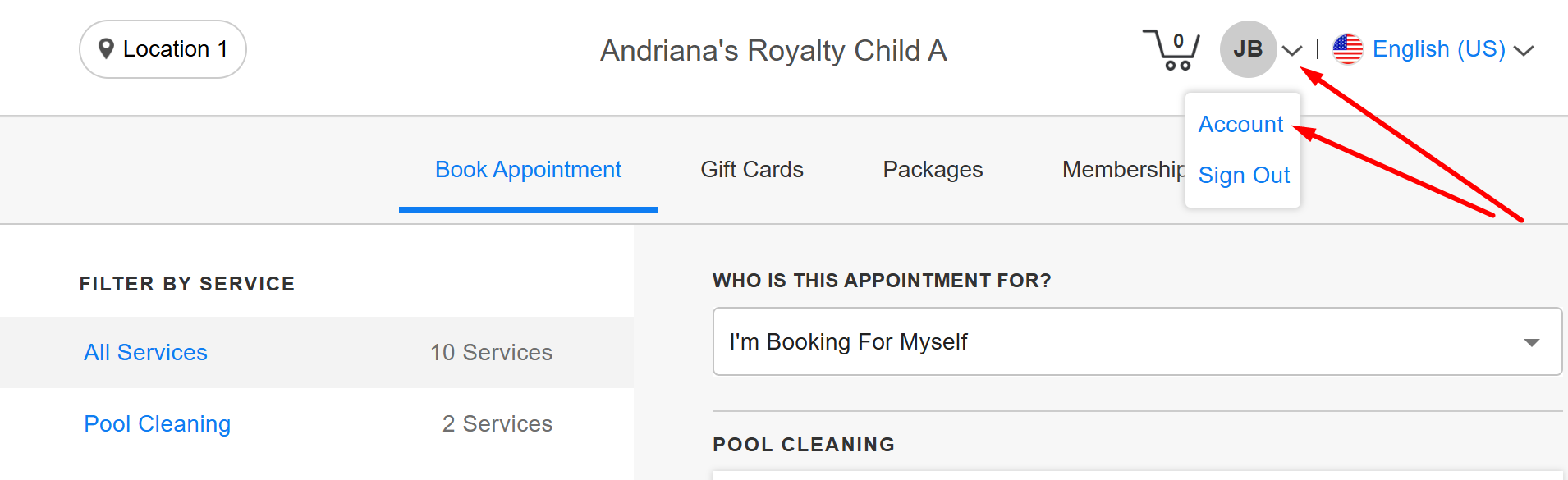 - Navigate to your booking page using the provided booking URL or the "Book" button on your website.