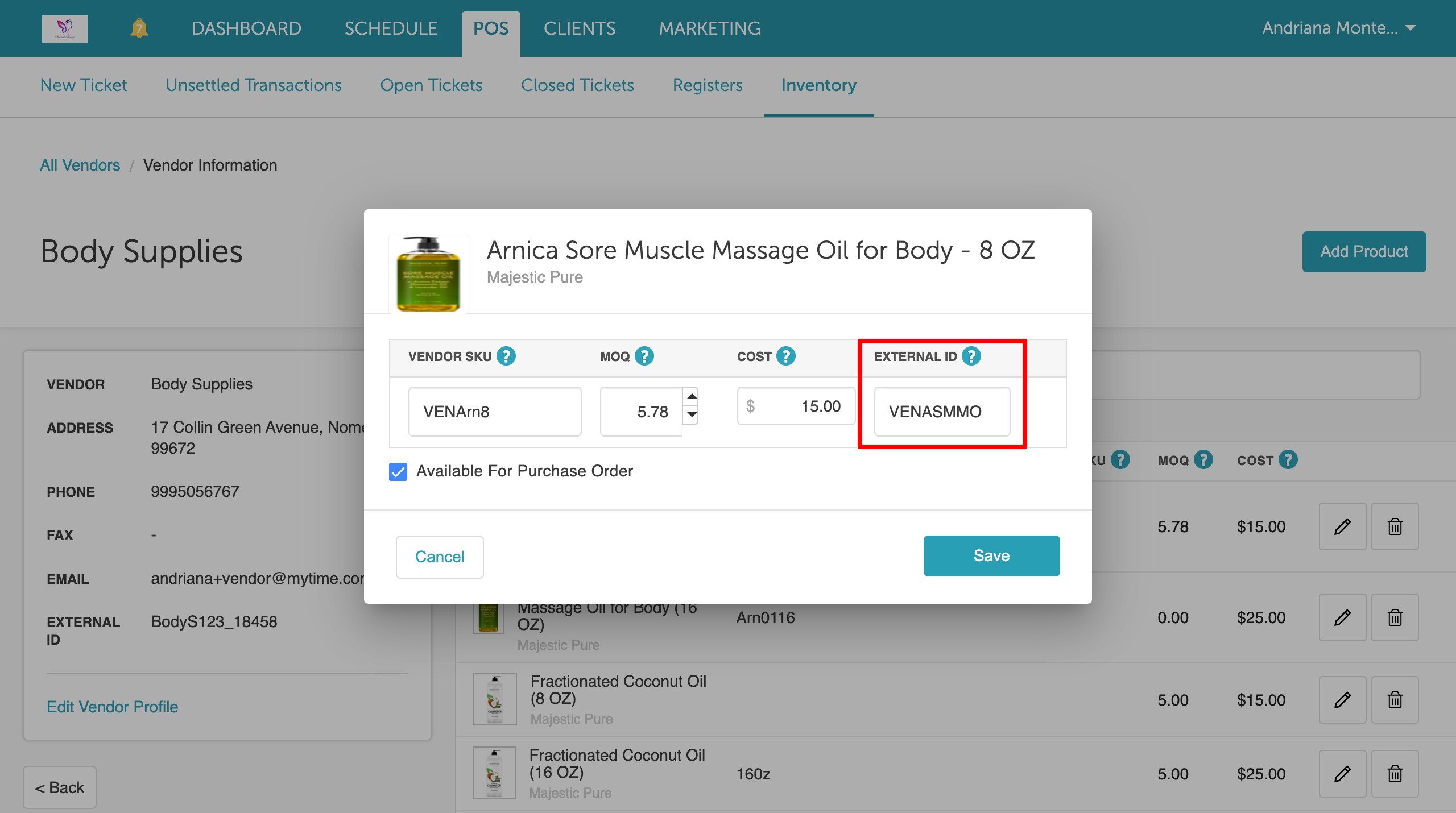 | vendor_sku_id | The vendor_sku_id can be found on your vendor product interface. The visibility of this field is controlled by a hidden setting that can only be activated by the MyTime team. To enable the hidden setting, please contact our Support Team at support@mytime.com ![]() |