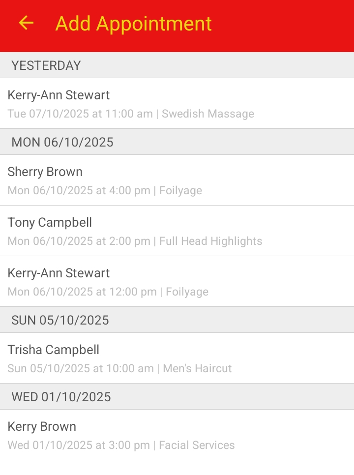 - Once all appointments have been added, proceed to payment and close the ticket.