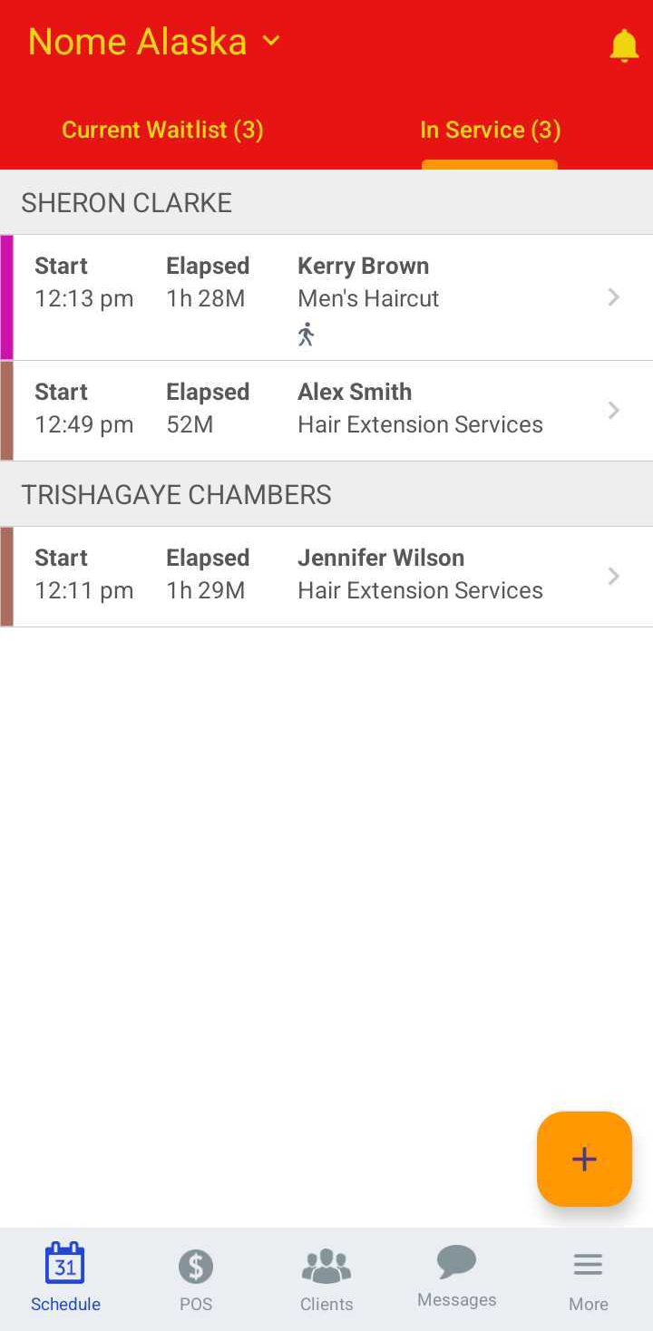 - In split view, you can see the Waitlist on the left and a list of employees with their in-service appointments on the right.