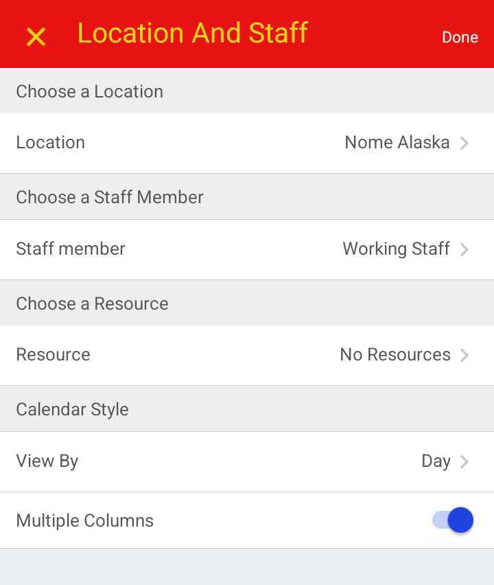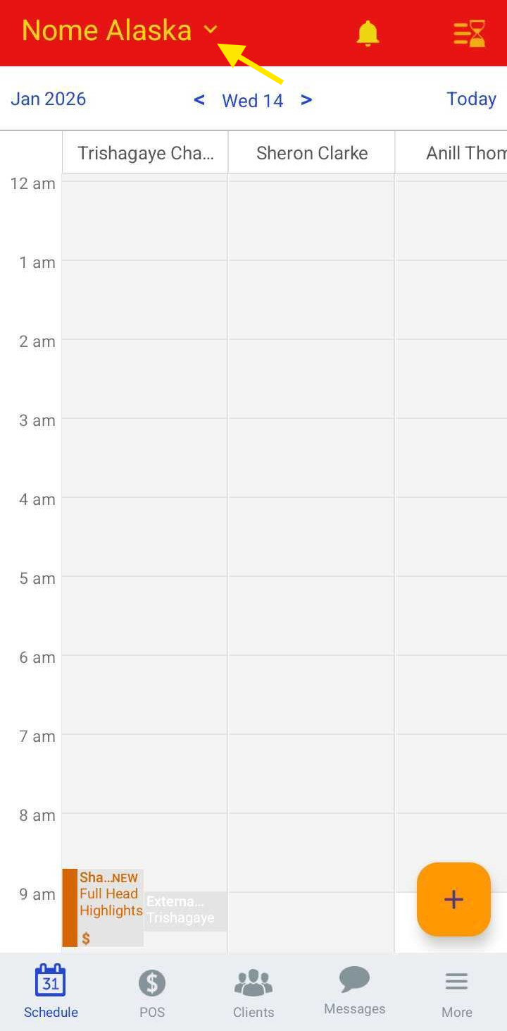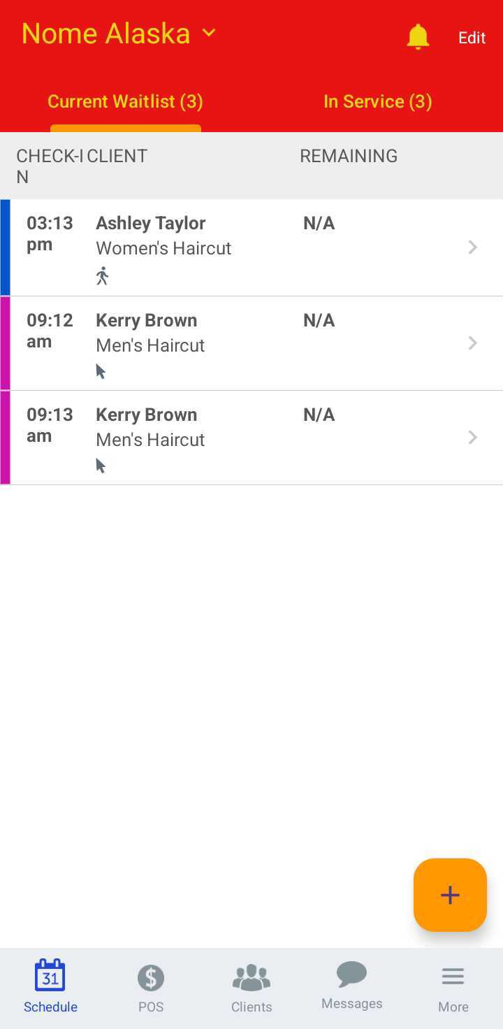 If you have the Waitlist feature enabled, you can use Split View to manage your schedule. The Split View displays the Waitlist on the left and a list of employees will appear along with their in-service appointments on the right.