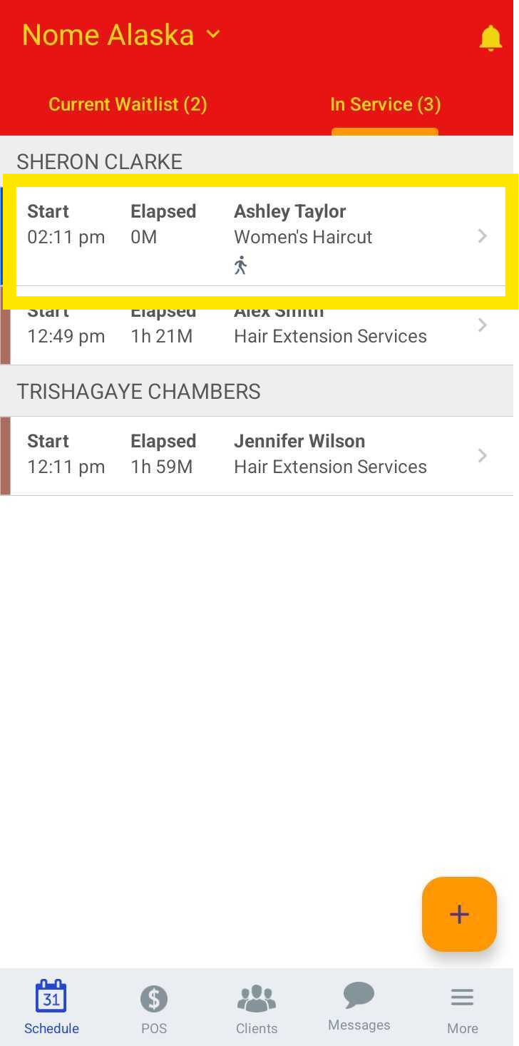 Appointments that are currently on the Waitlist can be started automatically by using the Start Service button.