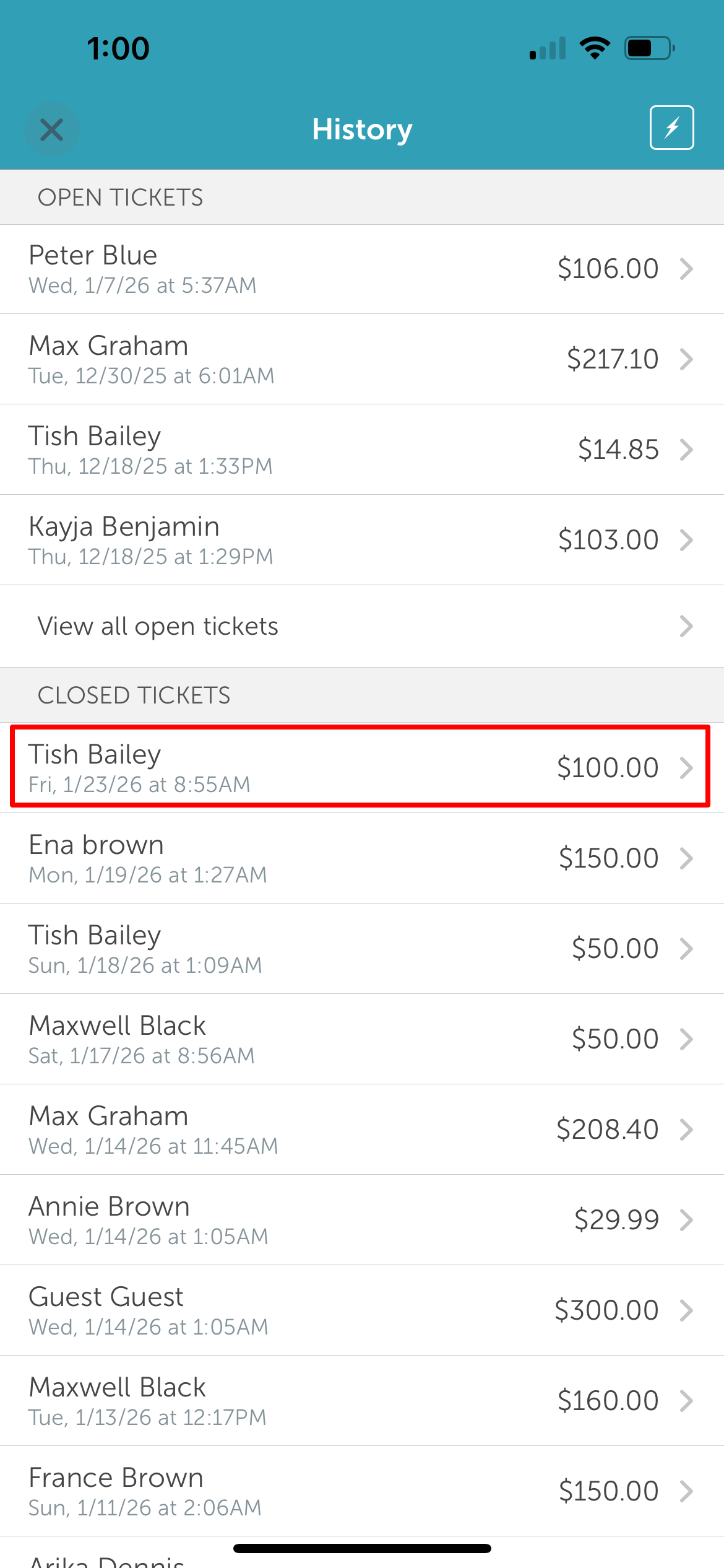 5. Select the closed ticket you want to refund