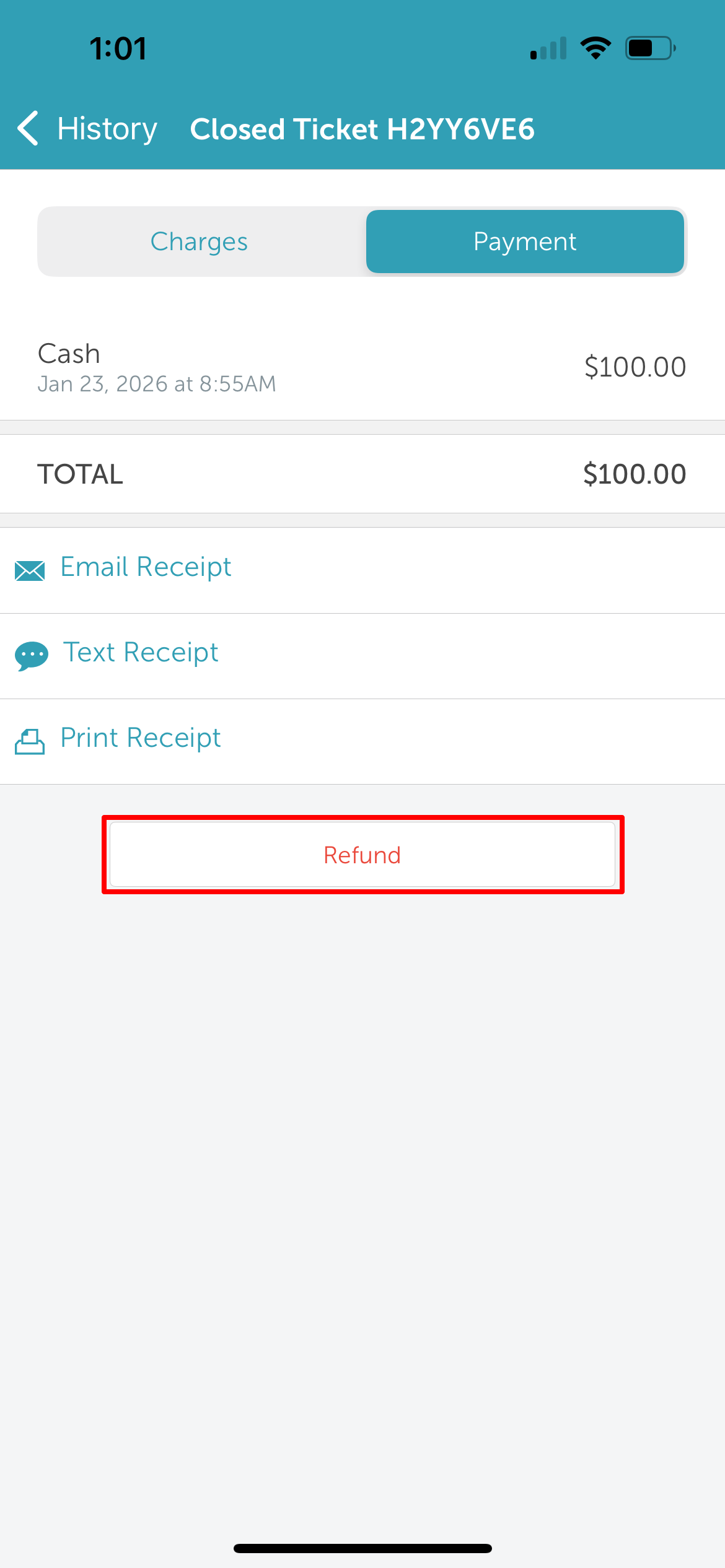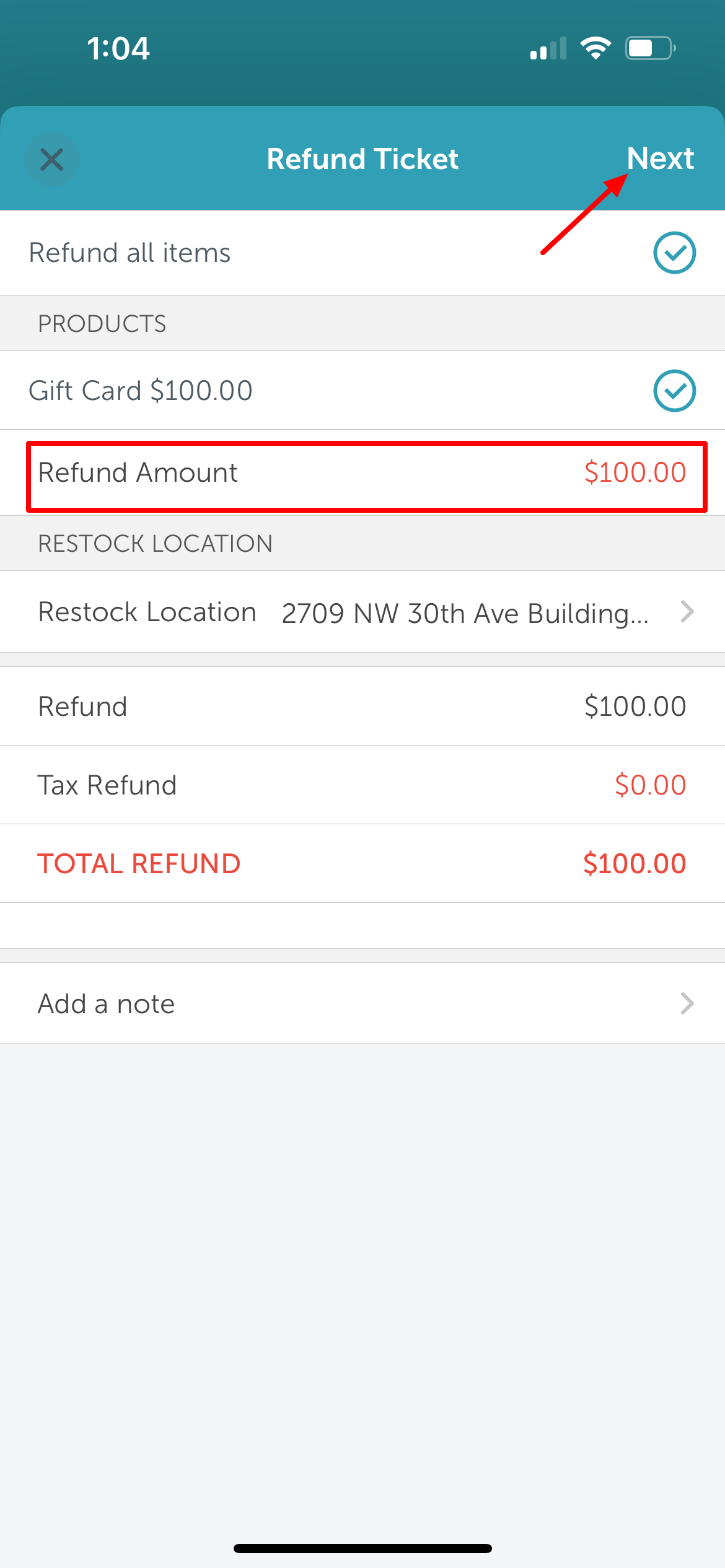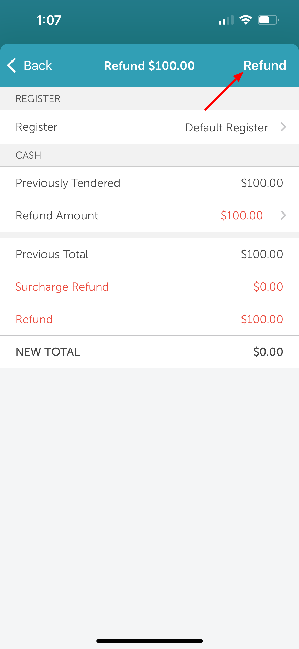 10. Tap 'Refund' to issue the refund