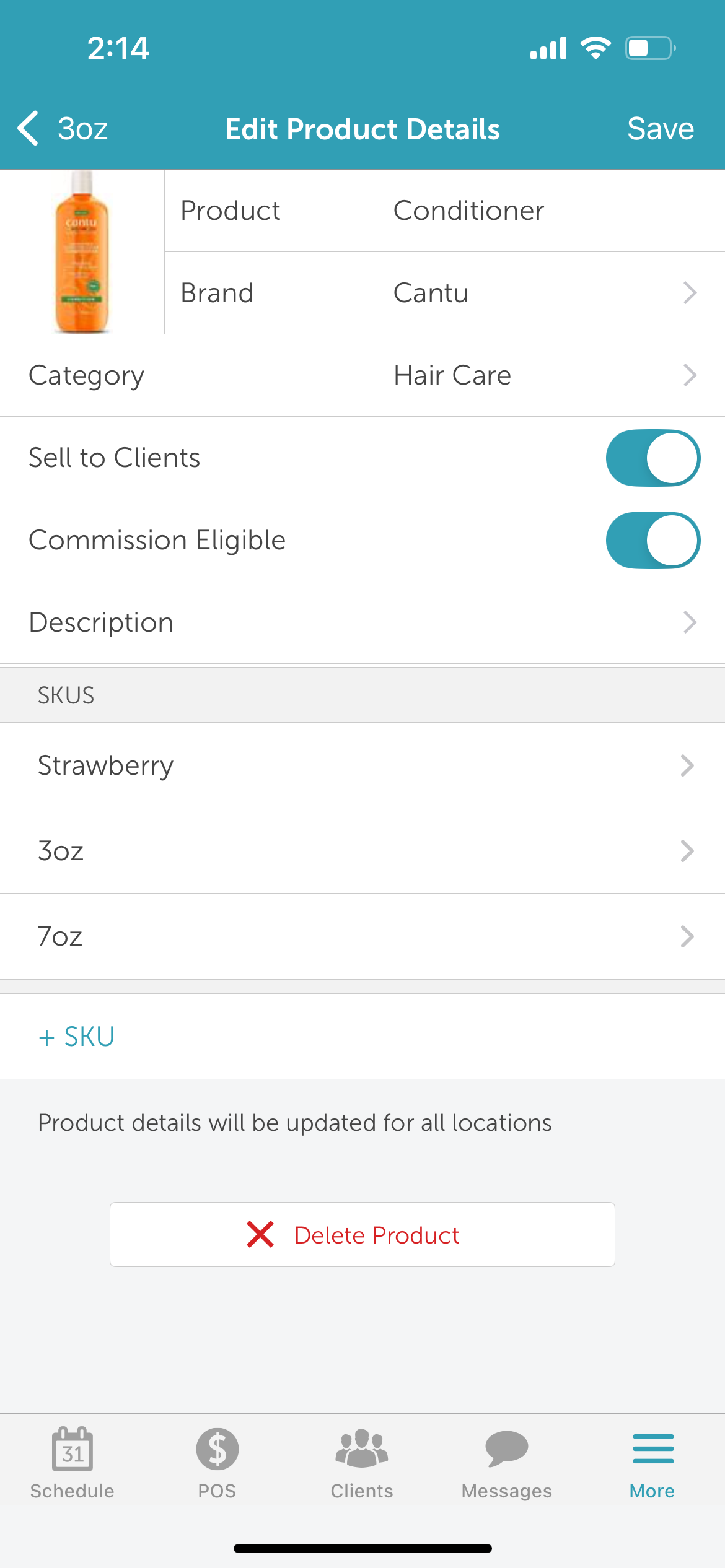 - A product is eligible for sale to clients only if the "Sell to Clients (And Apply Taxes)" checkbox is selected in the edit product details interface in the inventory