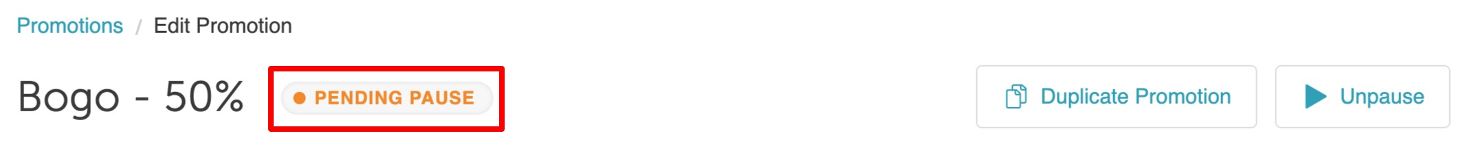 - The promotion will enter a Pending Pause status until you save it