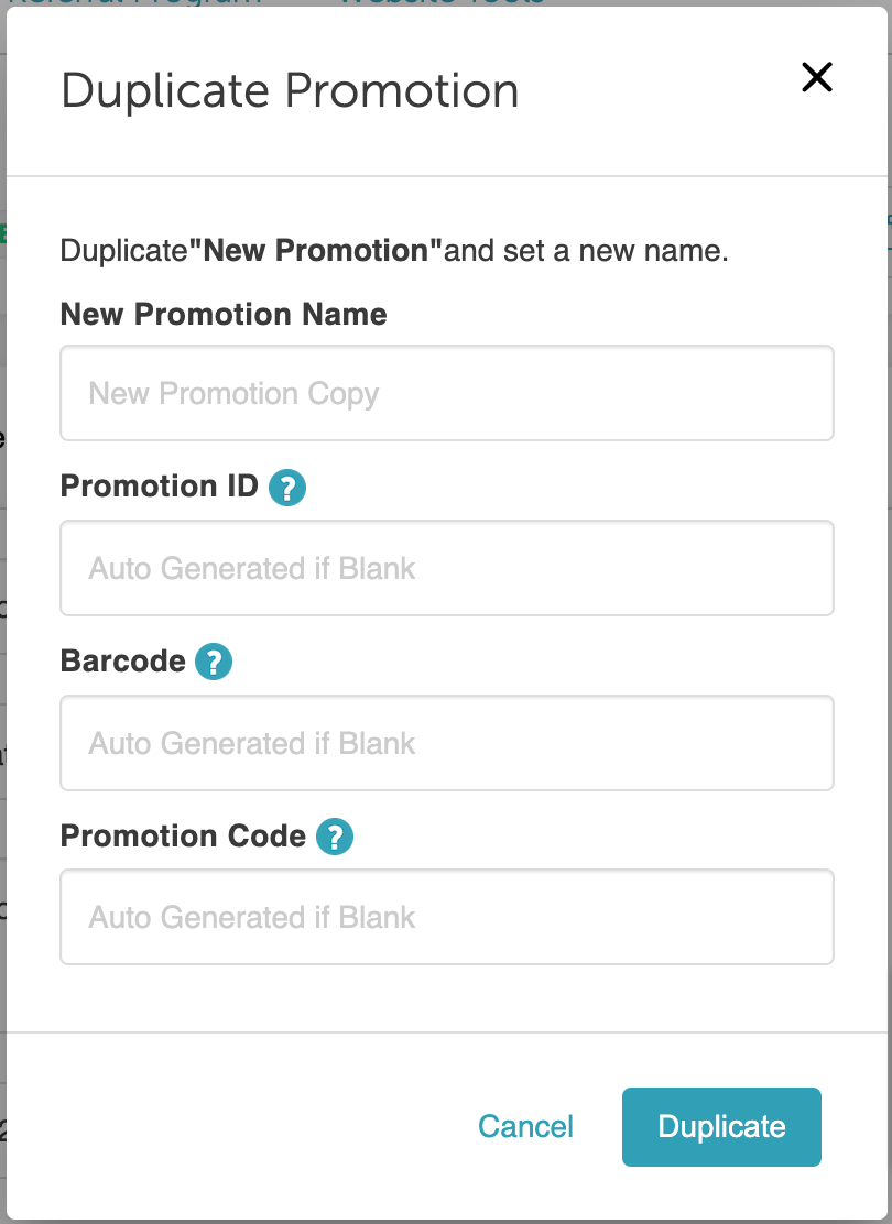 - The Duplicate Promotion modal will appear. Enter the following information: