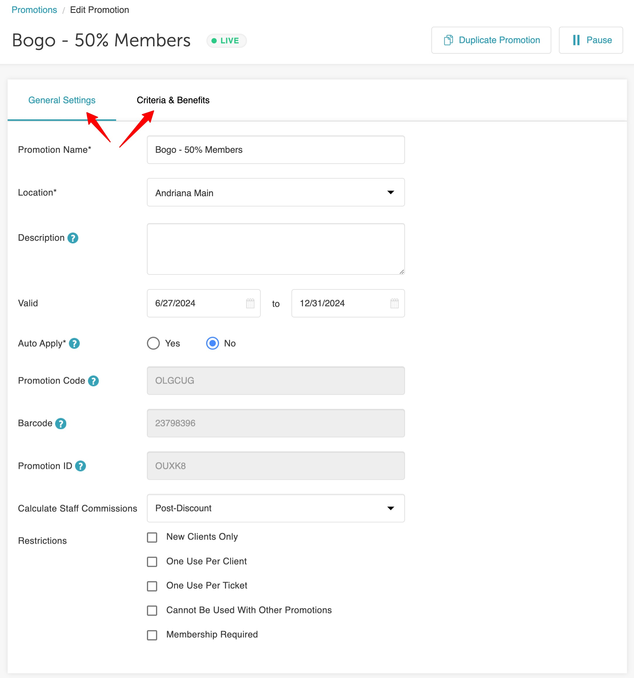 - Click the Edit icon on the main page, then select Duplicate Promotion at the top
