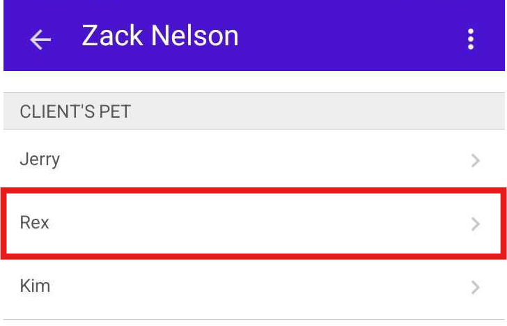 - In the Client’s Pet section, select the pet whose profile you want to edit