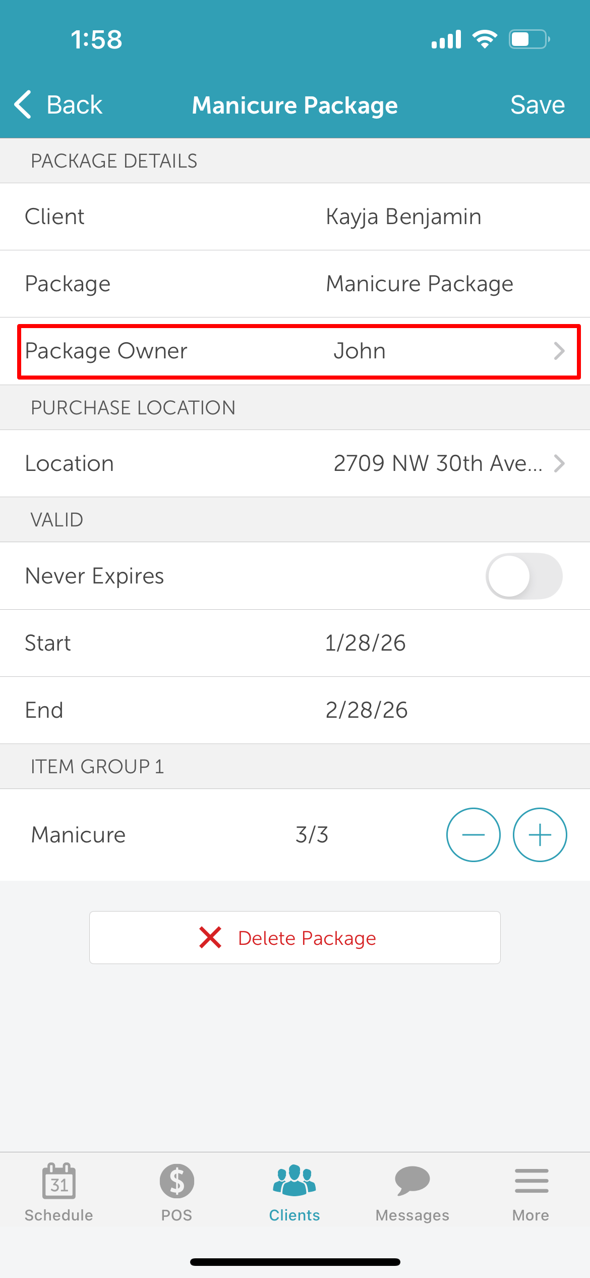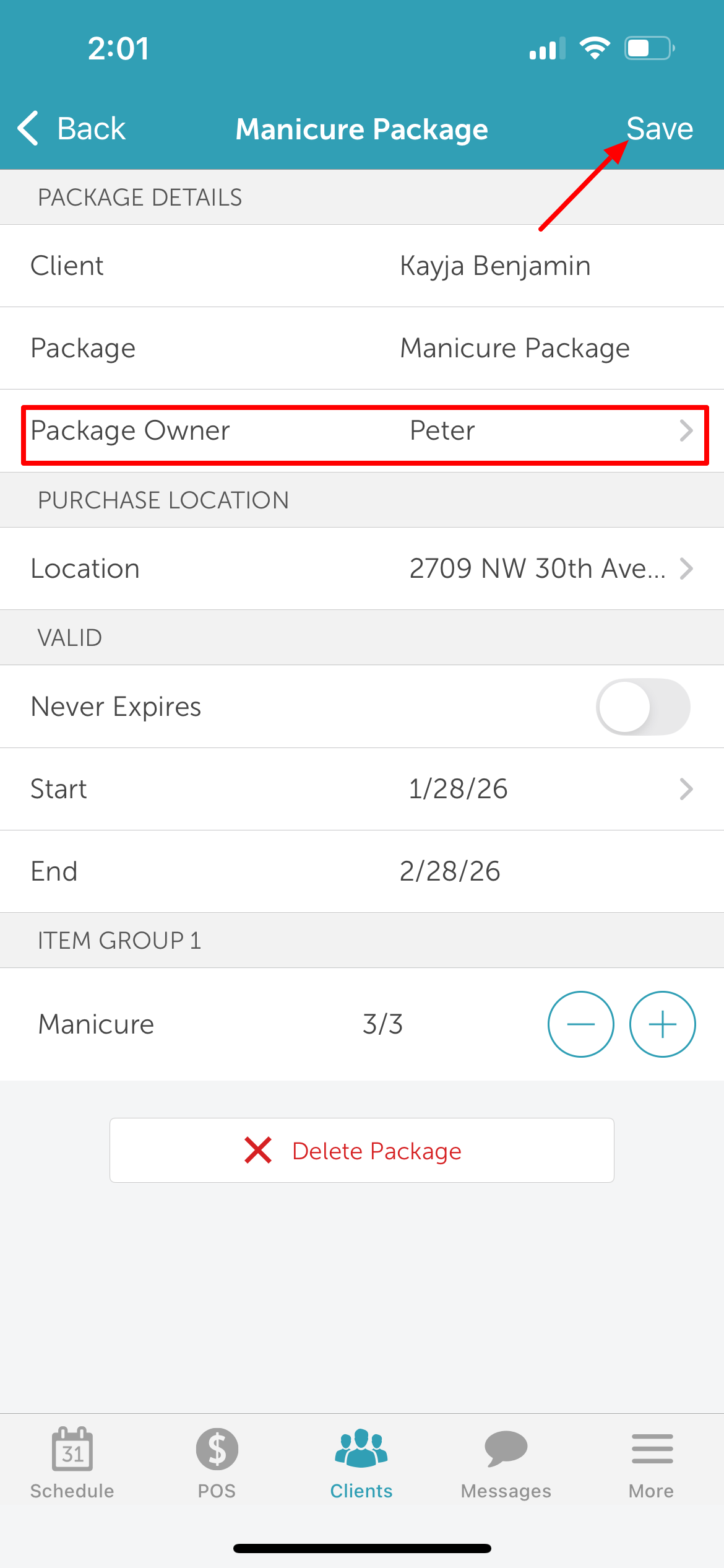 You can change the family member linked to an existing package at any time. This article walks you through how to update the package owner on the scheduler app.