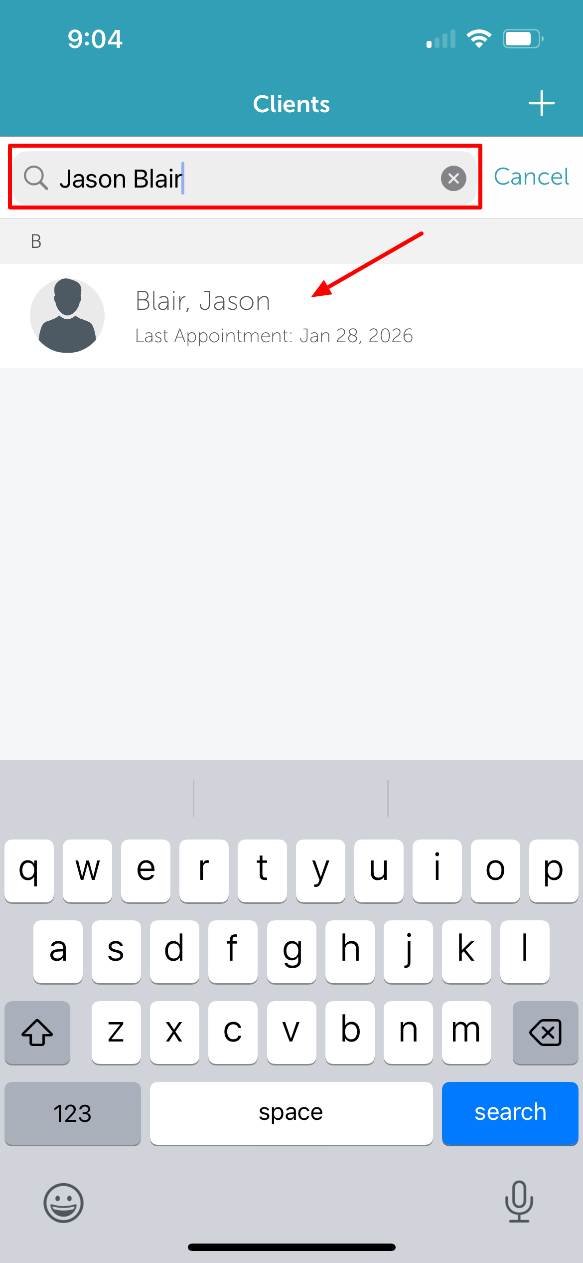 4. Type the client’s name in the Search field, or select the client from the client list