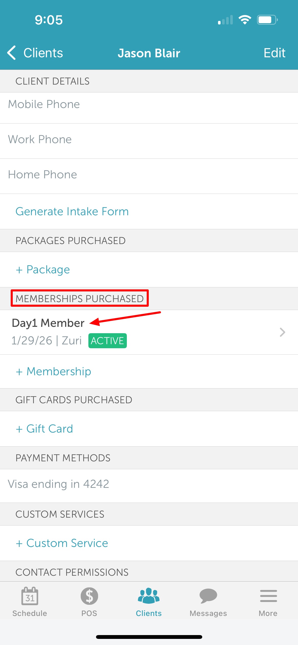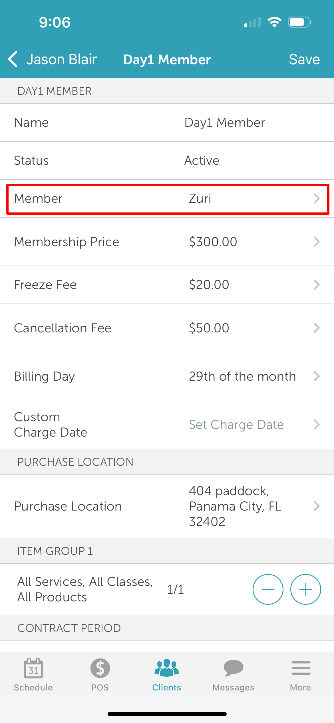 Once saved, the membership will be updated on the client profile with the new pet assignment.
