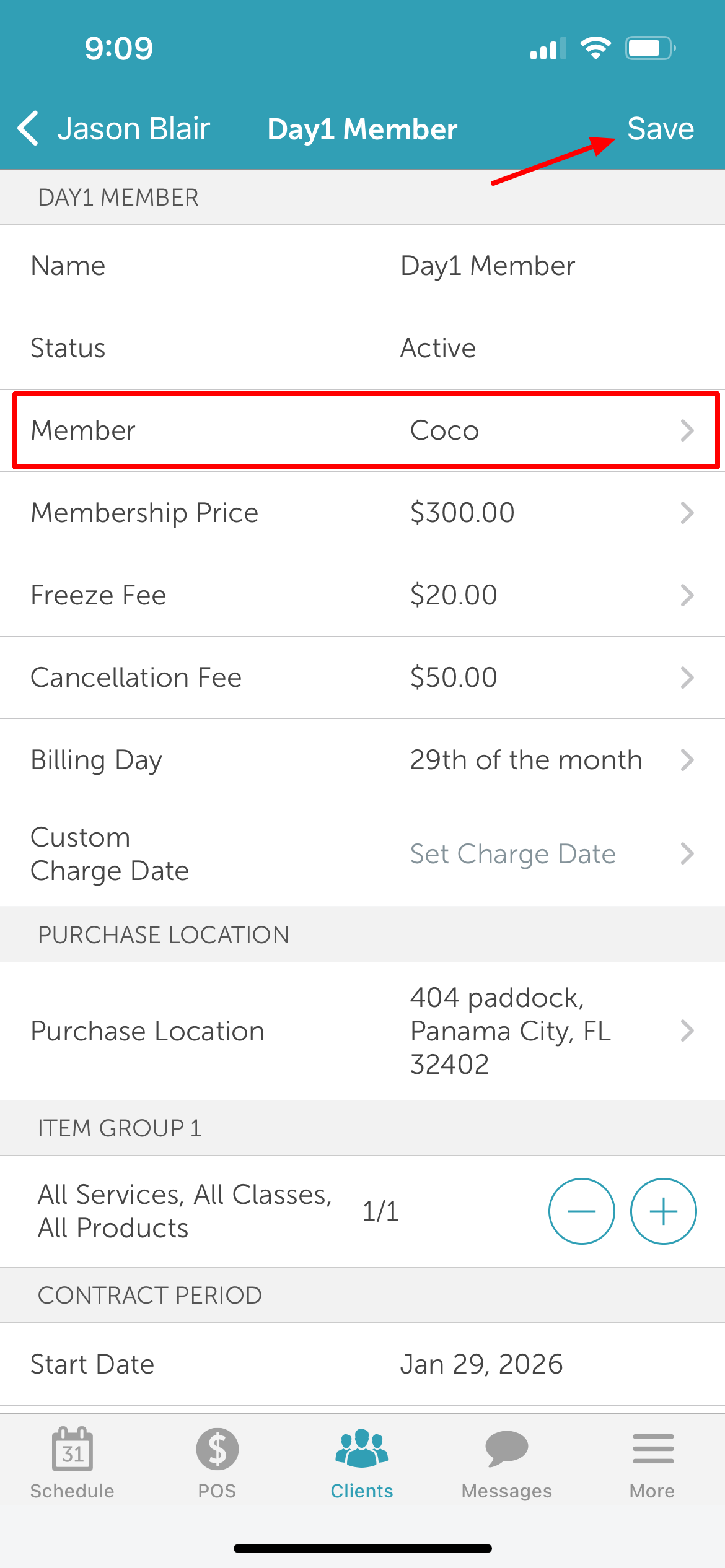 9. Confirm that the Member field displays the updated pet