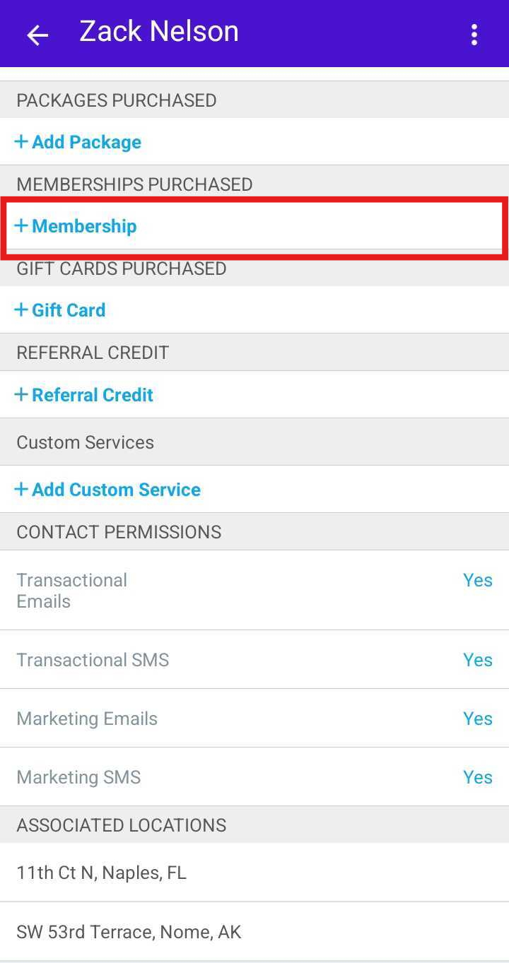 - Tap the field to select a pet from the client’s profile as the membership owner