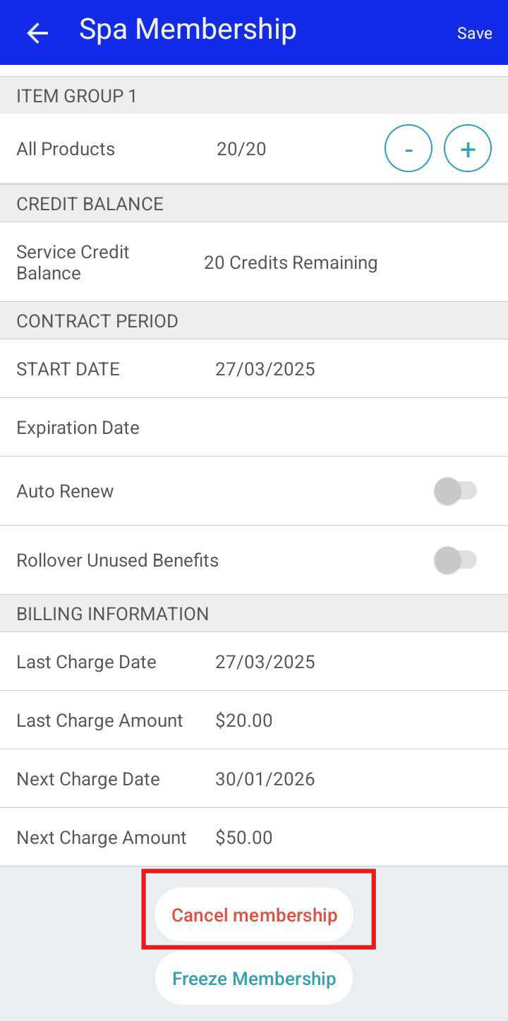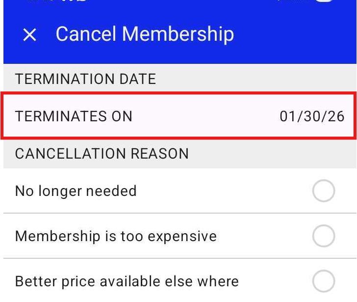- Scroll to the bottom of the screen and tap Cancel Membership