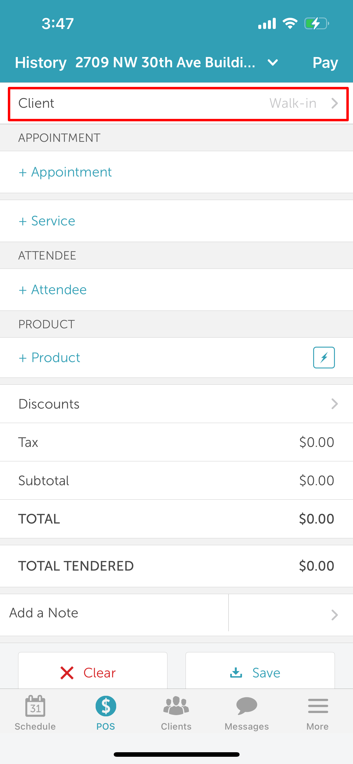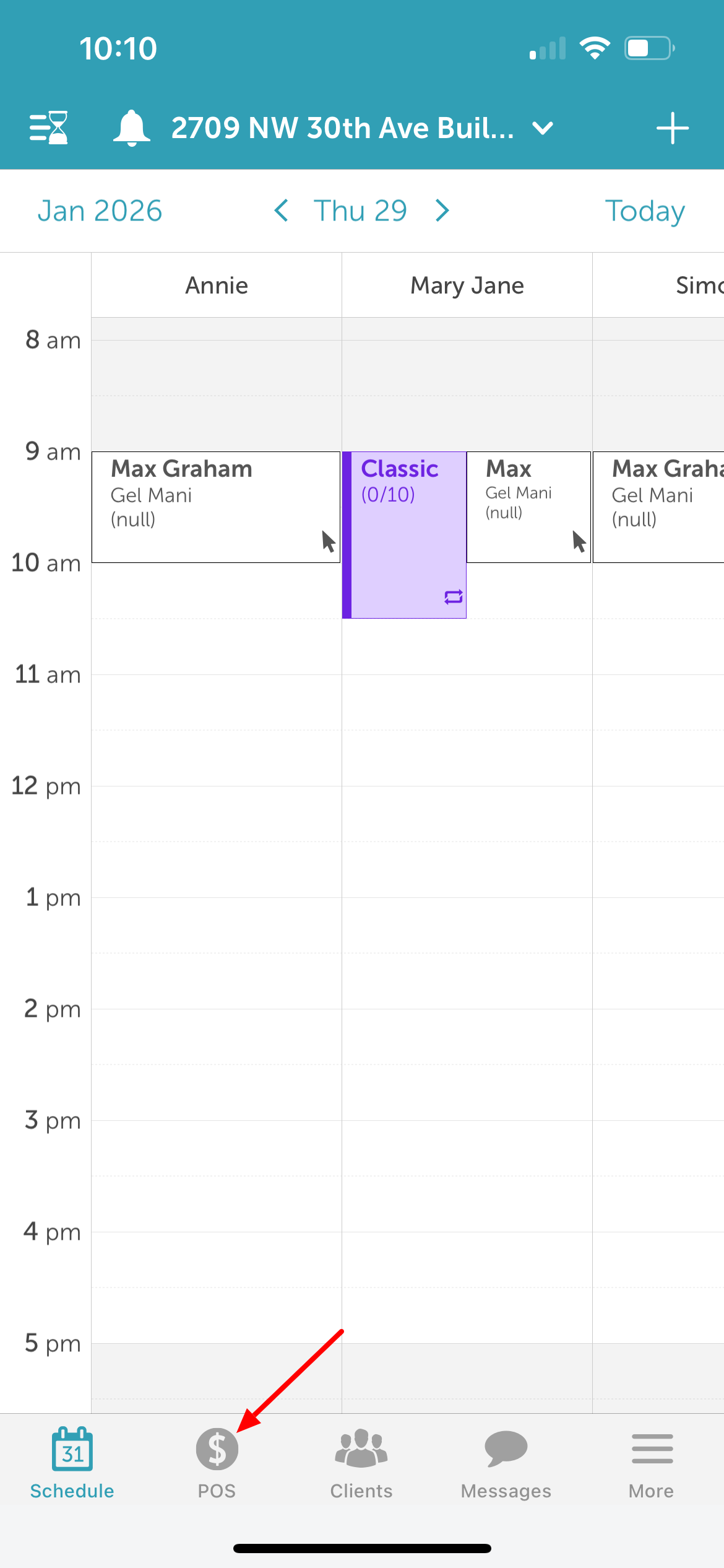 1. From the Schedule, tap 'POS" at the bottom of the screen
