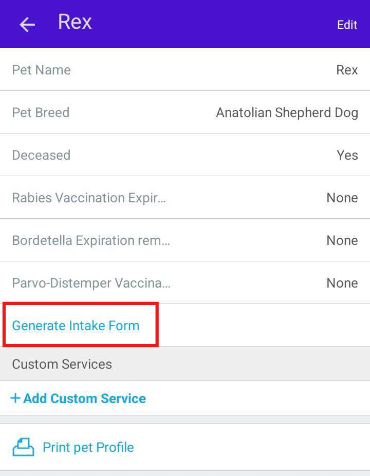 If there is missing information on a client’s pet profile, you can generate the intake form and have the client's pet complete it in person or before they come in for their appointment. In this article, we will discuss generating pet intake forms on the scheduler app.