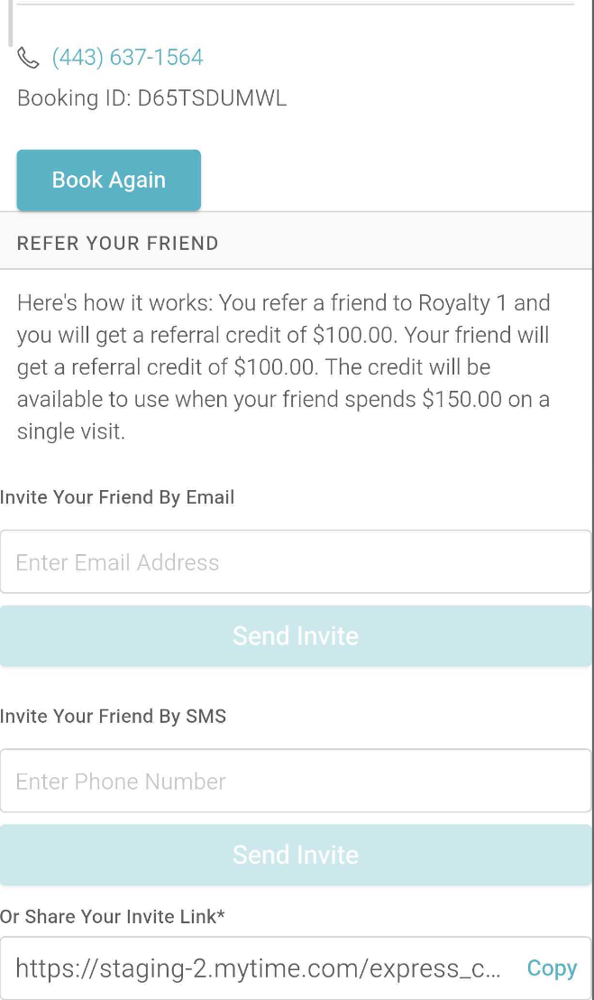 - To book another appointment for the same service, use the Book Again button to navigate to the Time Picker