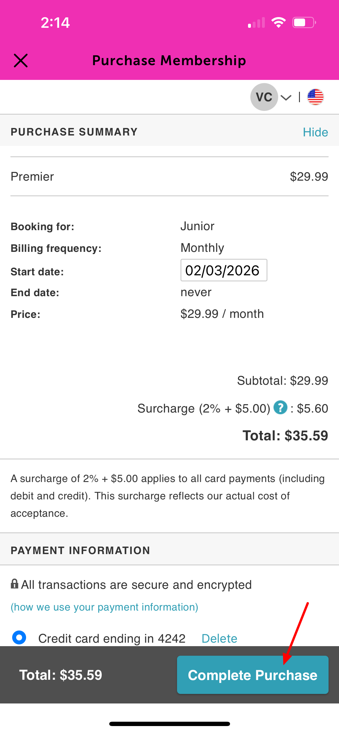Once clients download your custom white-labeled MyTime app from the Google Play Store (Android) or the Apple App Store (iOS), they can purchase family member memberships by following these steps: