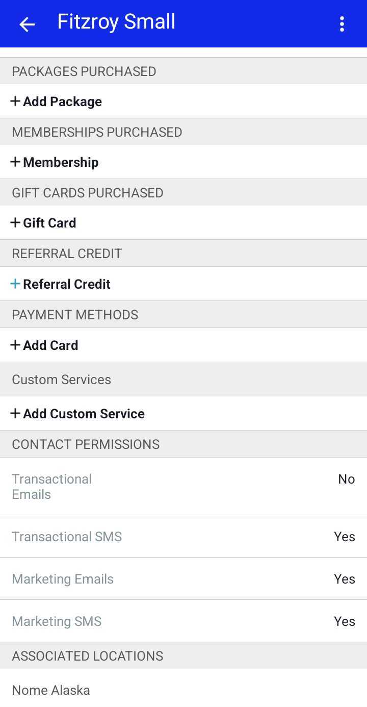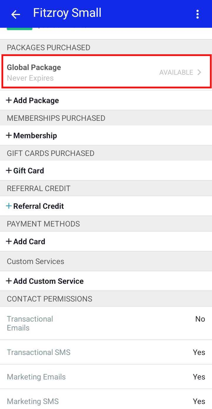 - On the client’s profile, scroll to the Packages Purchased section