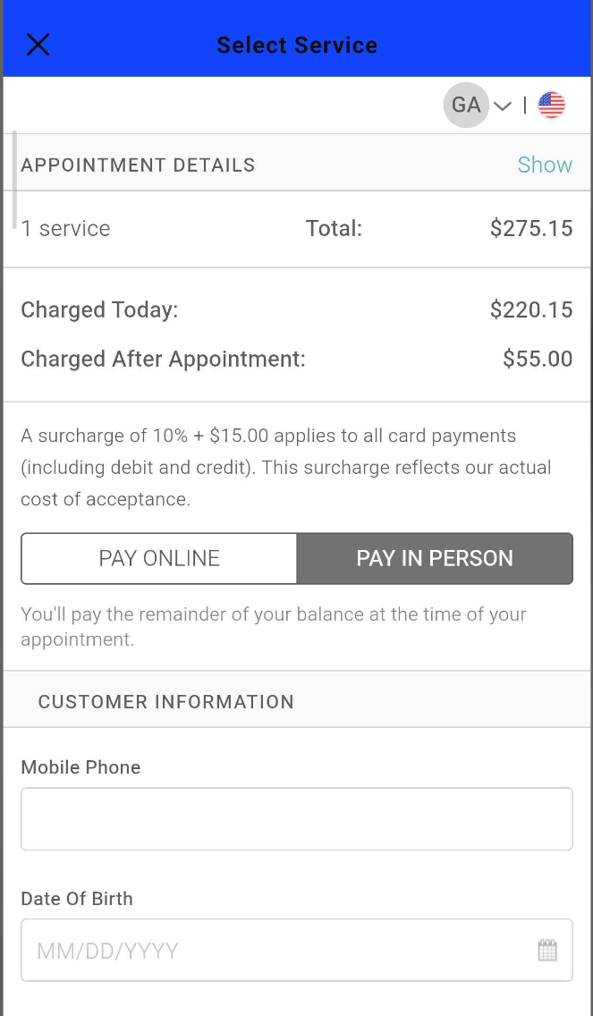- Selecting In-Store hides services offered only at the client’s location.