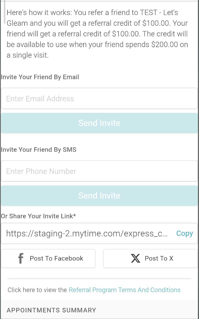 - Clients must sign in using an existing MyTime account, Facebook, or Apple login—or create a new account during checkout.