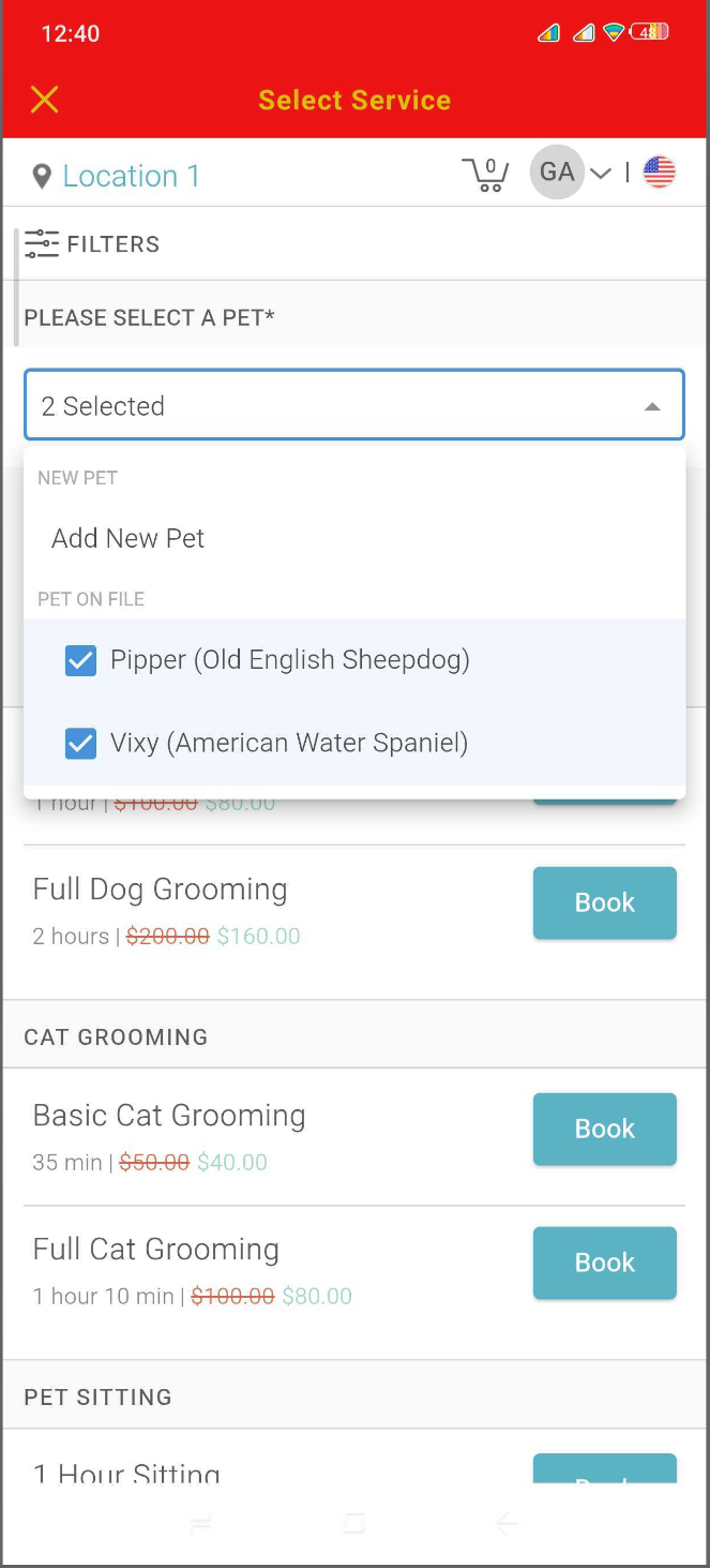 - Tap Book next to the desired service to add it for all selected pets