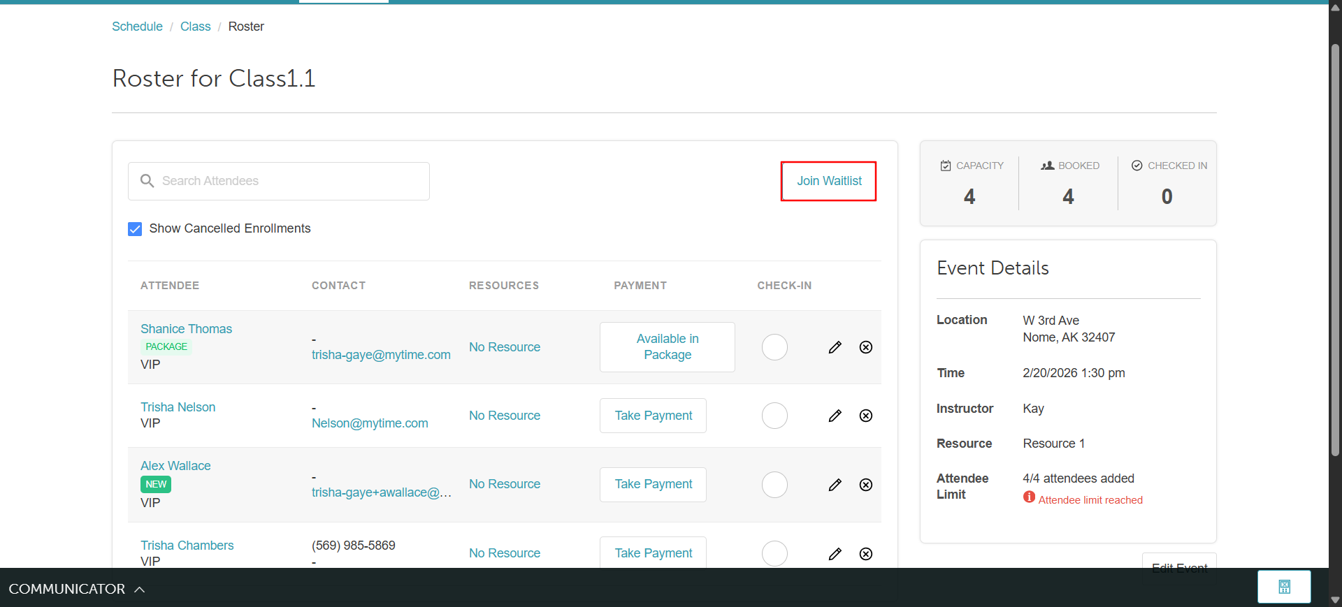 - The "Join Waitlist" option will only appear on the class roster once the class reaches full capacity.