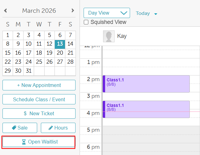 - Locate the "Open Waitlist" button on the left below the calendar
