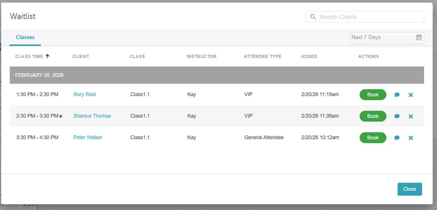 - Remove Entry: Click the "X" to remove a client from the waitlist.