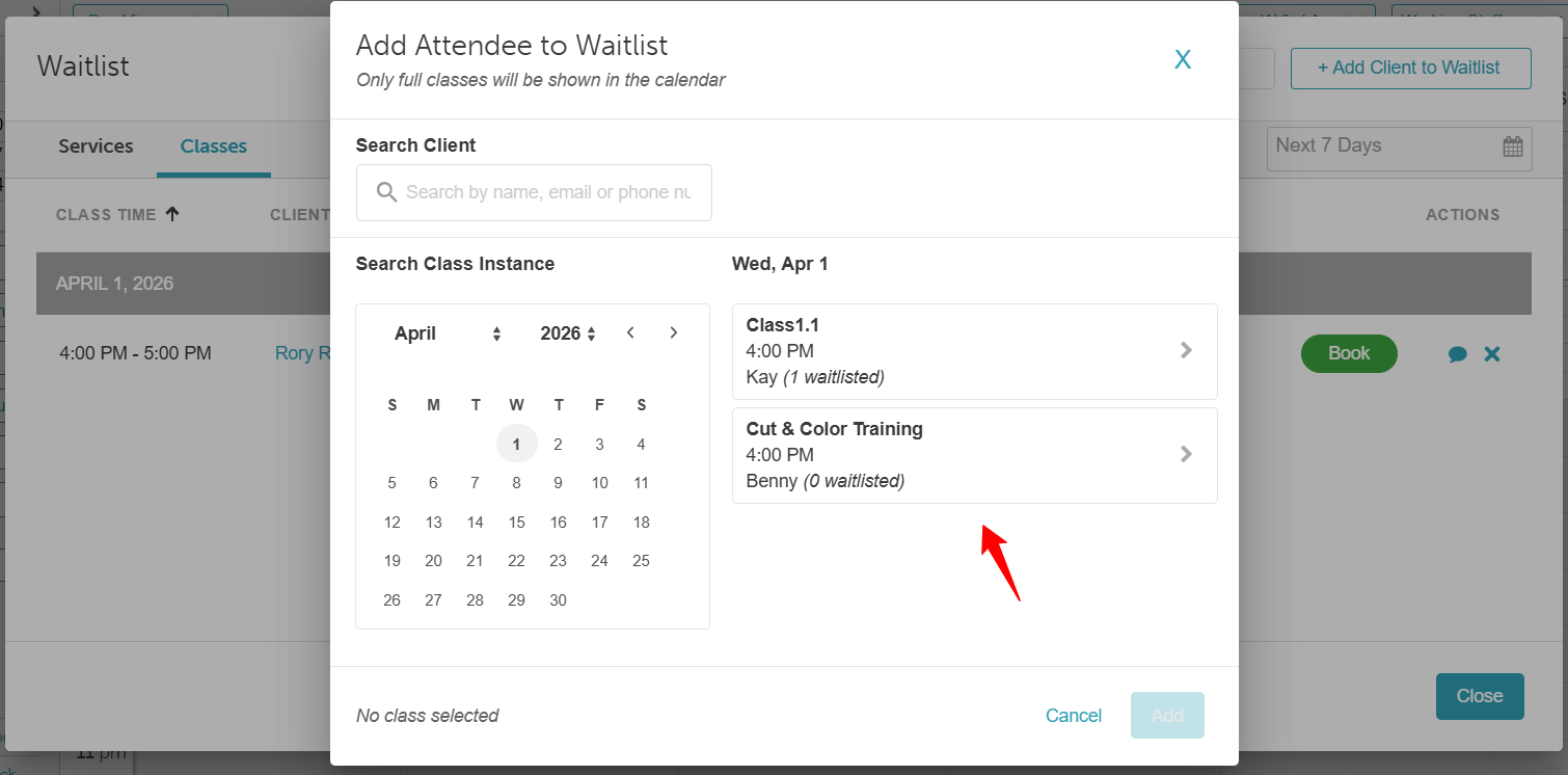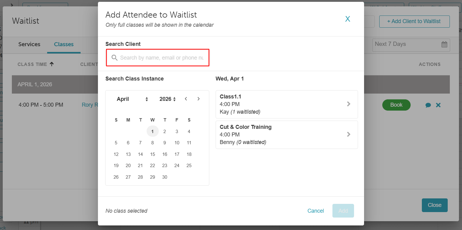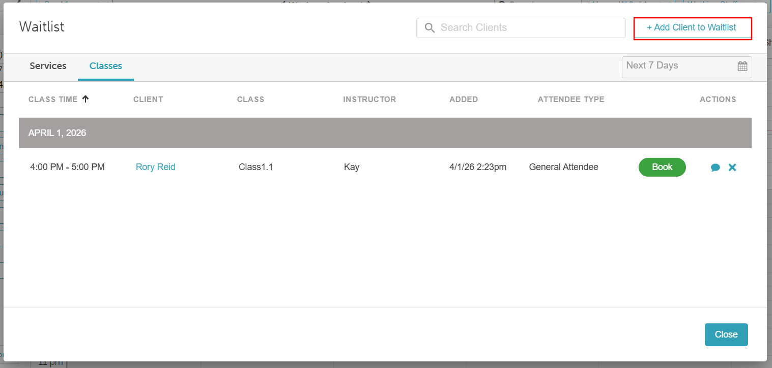 - Adding Clients to the Class Waitlist Directly from the Waitlist Modal