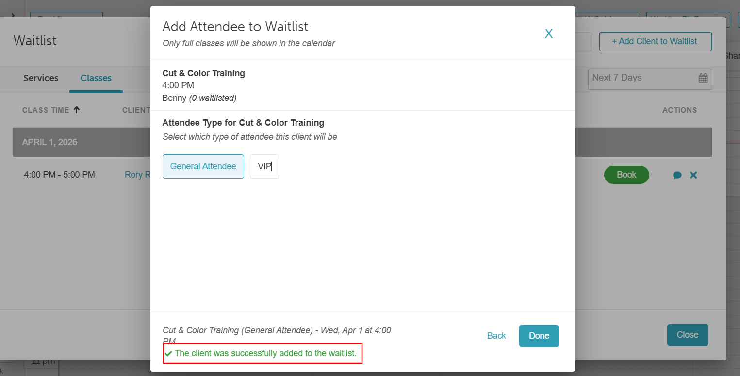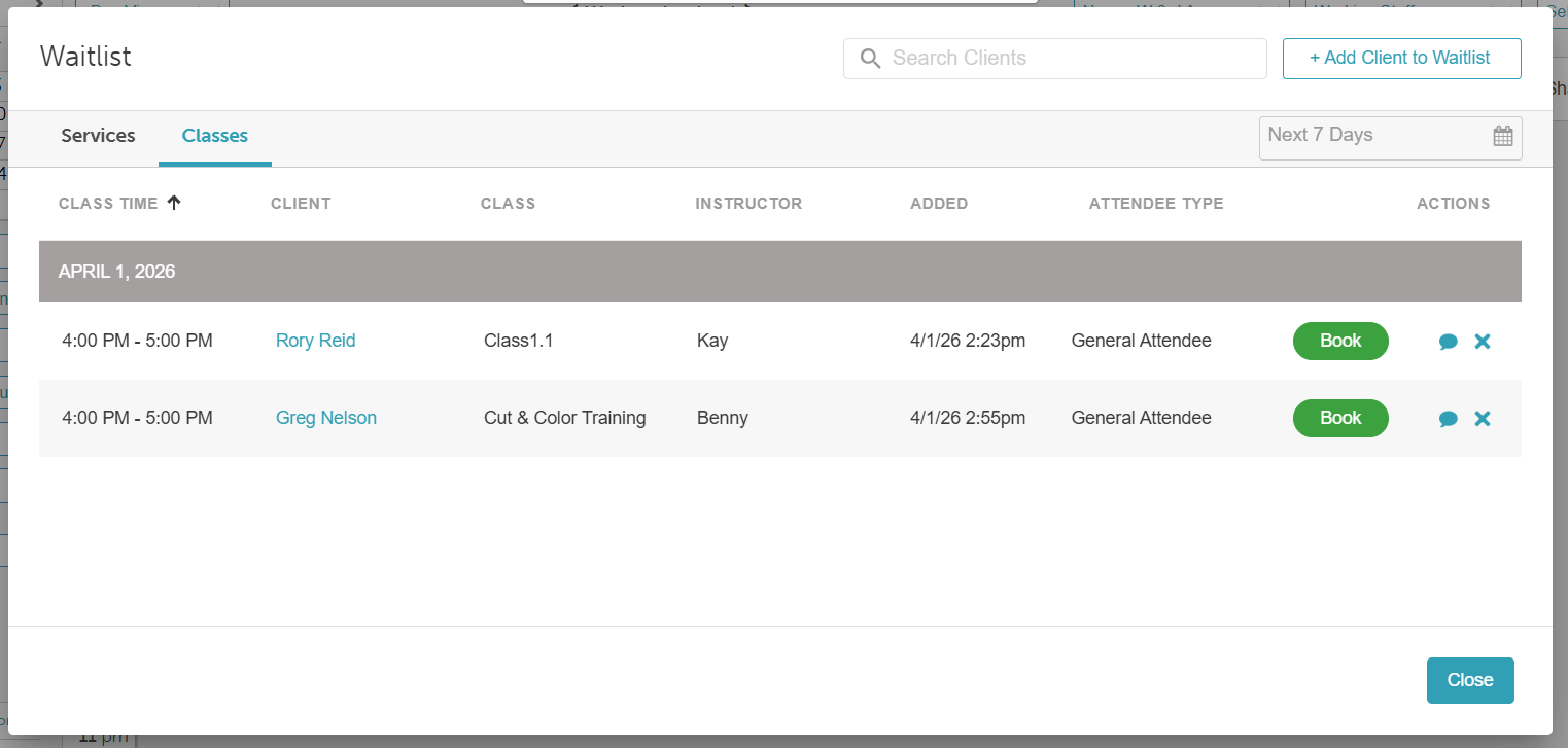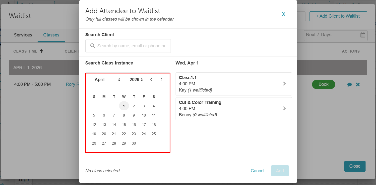 - Adding Clients to the Class Waitlist Directly from the Waitlist Modal