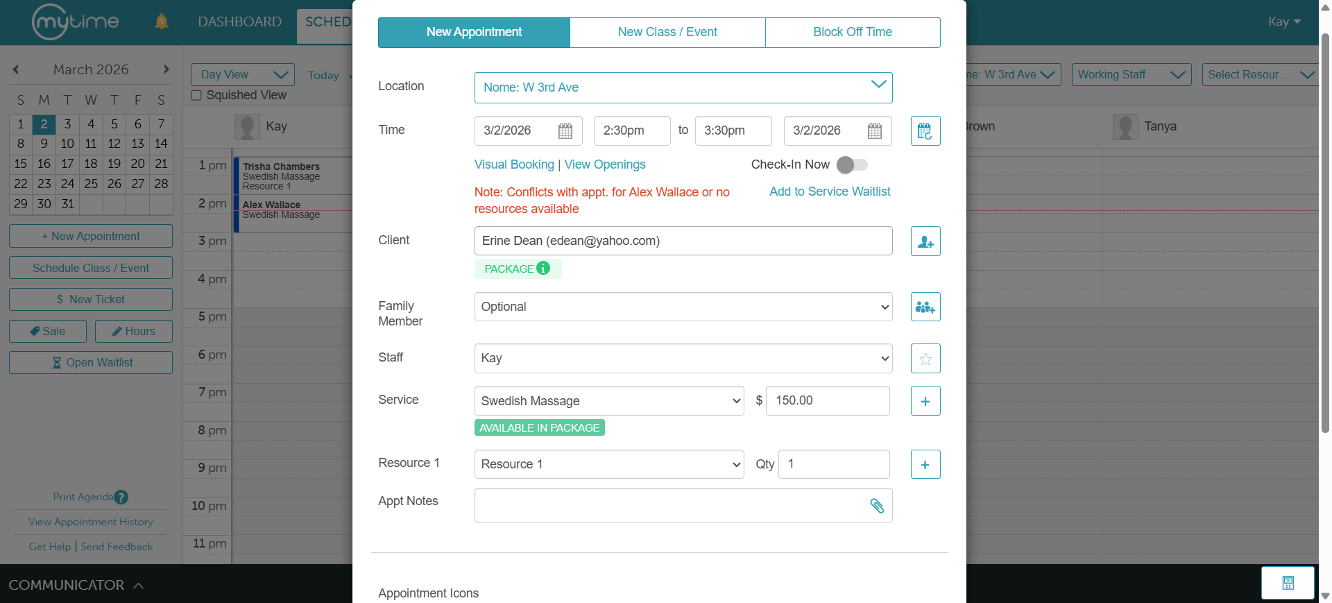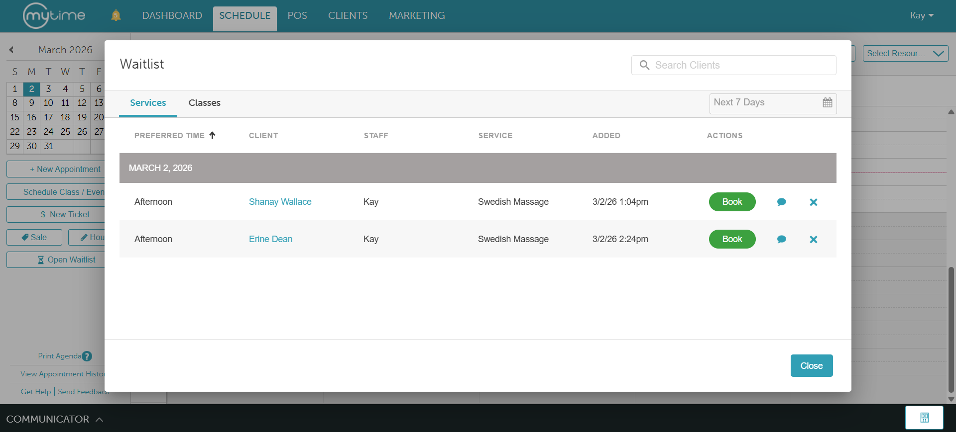 • You can use the waitlist modal to manage clients effectively. From this interface, you can: