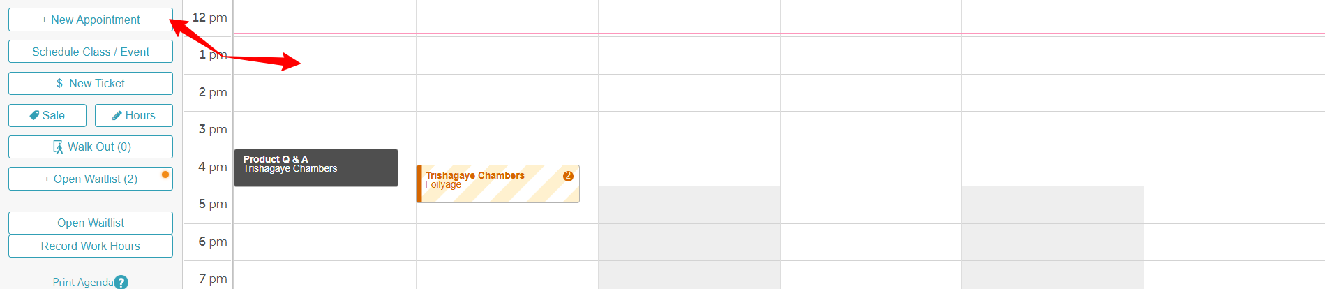 • Book Appointments: Select Book to instantly schedule the client into their desired time slot