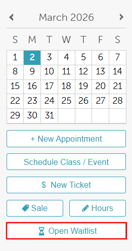 2. Locate the "Open Waitlist" button on the left below the calendar