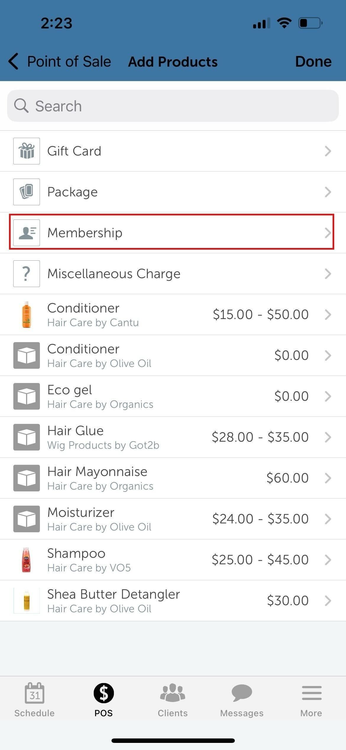 - Membership agreements will only appear in POS if a membership intake form has been created and at least one membership has been assigned to it.