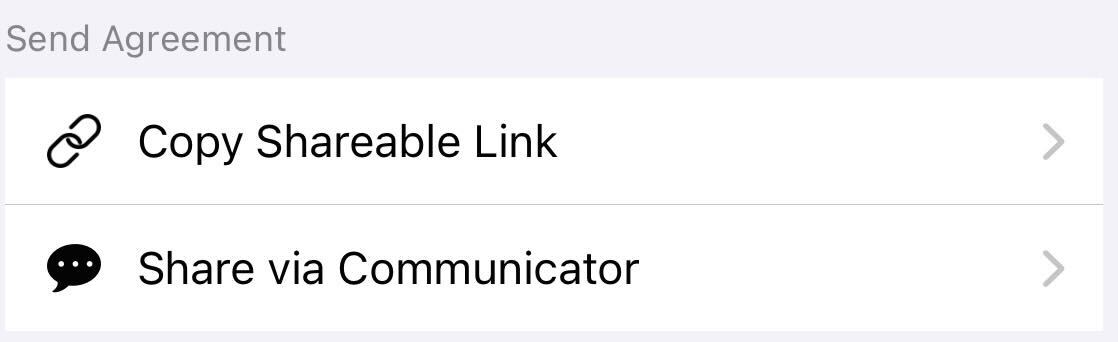 - Share via Communicator: Sends the agreement link through the MyTime Communicator.