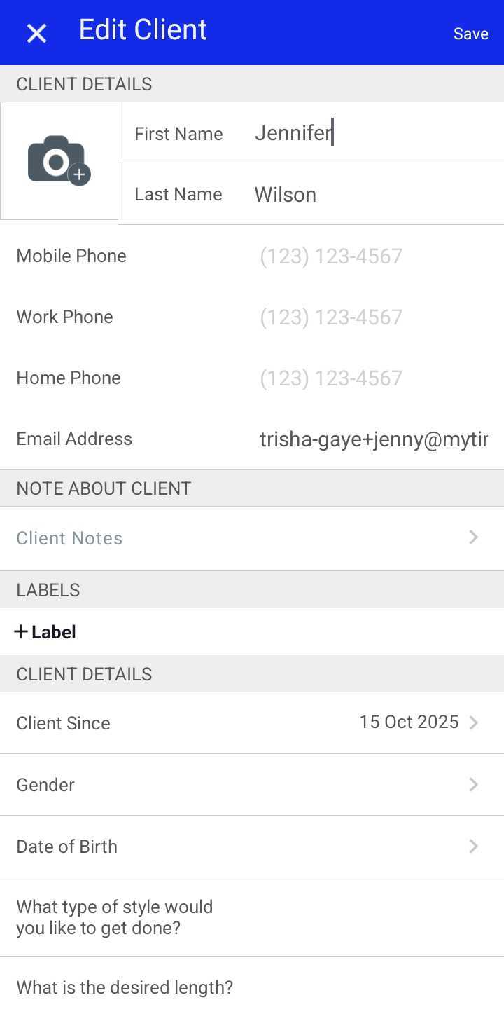 - Certain fields, such as Client Name, are mandatory. You cannot save changes if these fields are left blank.