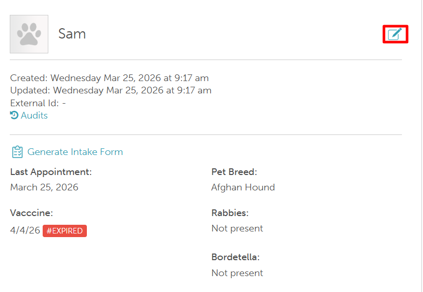 - Once the profile is open, find the pet you want to update